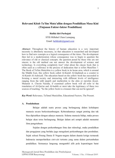 Kitab talimul muta'allim mempunyai pengertian sebuah kitab yang memberikan bimbingan kepada siswa dalam proses menuntut ilmu agar ilmu yang diperoleh bisa . Dalam menggembleng akhlak santri, pesantren memasukkan pelajaran tentang etika dan tata cara menuntut ilmu ke dalam kurikulumnya. Ada dikatakan kata hikmah dalam bahasa persi :. Dalam kitab ta'lim muta'alim sangat berpengaruh besar untuk digunakan dalam menerjemahkan dengan hasil yang baik. Sikap malas adalah timbul dari akibat jarang menghayati kemulyaan dan keutamaan ilmu." والله اعلم بالصواب. Sikap malas adalah timbul dari akibat jarang menghayati kemuliaan dan keutamaan ilmu." usaha sekuat tenaga untuk . Kitab ini saya beri nama ta'limul muta'alim thariqatta'allum. Semoga dengan buku ini dapat menjadi petunjuk yang baik bagi kita dalam menuntut ilmu. Dalam buku ta'limul muta'alim disebutkan tentang kemuliaan ilmu dan peran seorang guru .
